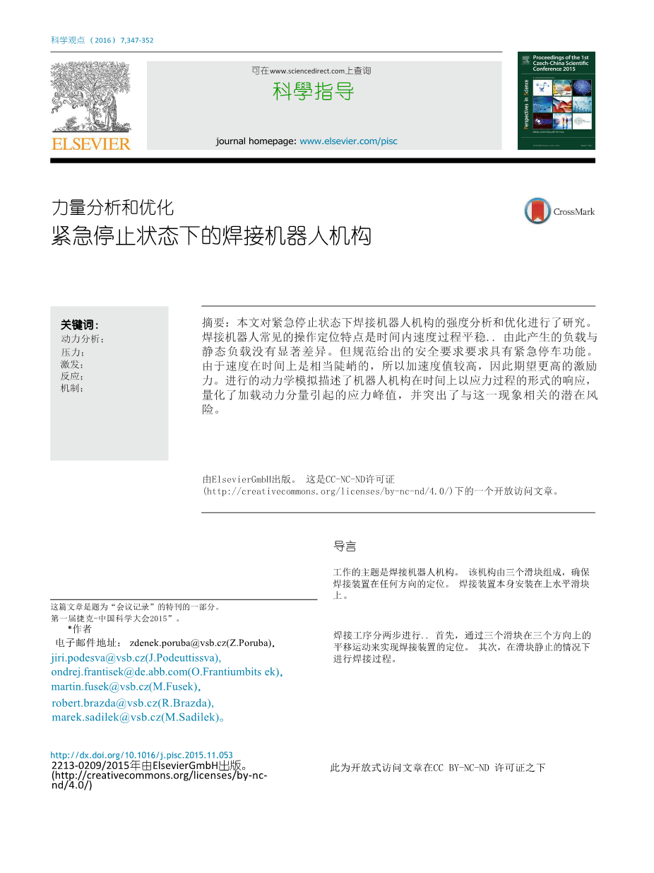 - 力量分析和优化:紧急停止状态下的焊接机器人机构外文翻译资料