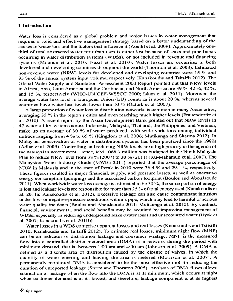 应用夜间最小流量利用统计模型估算水量 损失:以马来西亚金塔谷为例外文翻译资料 2023-02-21 08:02 英语原文共 17 页,剩余内容已隐藏,支付完成后下载完整资料 英语译文共 18 页,剩余内容已隐藏,支付完成后下载完整资料 资料编号:[410829],资料为PDF文档或Word文档,PDF文档可免费转换为Word 您需要先支付 30元 才能查看全部内容!立即支付 发小红书推广免费获取该资料资格。点击链接进入获取推广文案即可: Ai一键组稿 | 降AI率 | 降重复率 | 论文一键排版 PREVIOUS NEXT 您可能感兴趣的文章 水消毒的混合空化法:化学药品与空化同时使用外文翻译资料 区域水资源可持续利用:中国海化生态工业试验区项目经验外文翻译资料 光催化降解TBA合成Sn-CNT纳米复合材料外文翻译资料 配电网水损估算的准确性——以巴黎为例外文翻译资料 一种利用智能计量数据改进水损失控制的新方法外文翻译资料 减少水损失和变更管理外文翻译资料 花状Bi2O4/ZnO异质结的合成及可见光下增强光降解有机污染物机理外文翻译资料 土壤磷水平对草坪草磷径流浓度的影响外文翻译资料 中国太湖的微塑料外文翻译资料 配水系统中用于流量测试的消火栓的优化选择外文翻译资料