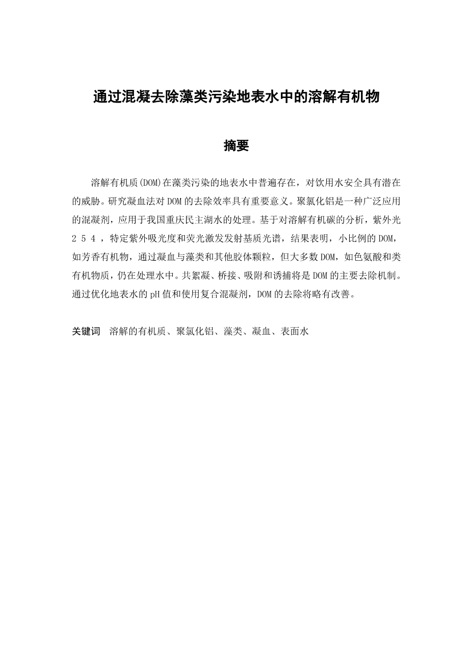 通过混凝去除藻类污染地表水中的溶解有机物外文翻译资料 2023-04-18 07:04 英语原文共 9 页,剩余内容已隐藏,支付完成后下载完整资料 英语译文共 24 页,剩余内容已隐藏,支付完成后下载完整资料 资料编号:[588641],资料为PDF文档或Word文档,PDF文档可免费转换为Word 您需要先支付 30元 才能查看全部内容!立即支付 发小红书推广免费获取该资料资格。点击链接进入获取推广文案即可: Ai一键组稿 | 降AI率 | 降重复率 | 论文一键排版 PREVIOUS NEXT 您可能感兴趣的文章 水消毒的混合空化法:化学药品与空化同时使用外文翻译资料 区域水资源可持续利用:中国海化生态工业试验区项目经验外文翻译资料 光催化降解TBA合成Sn-CNT纳米复合材料外文翻译资料 配电网水损估算的准确性——以巴黎为例外文翻译资料 一种利用智能计量数据改进水损失控制的新方法外文翻译资料 减少水损失和变更管理外文翻译资料 花状Bi2O4/ZnO异质结的合成及可见光下增强光降解有机污染物机理外文翻译资料 土壤磷水平对草坪草磷径流浓度的影响外文翻译资料 中国太湖的微塑料外文翻译资料 配水系统中用于流量测试的消火栓的优化选择外文翻译资料