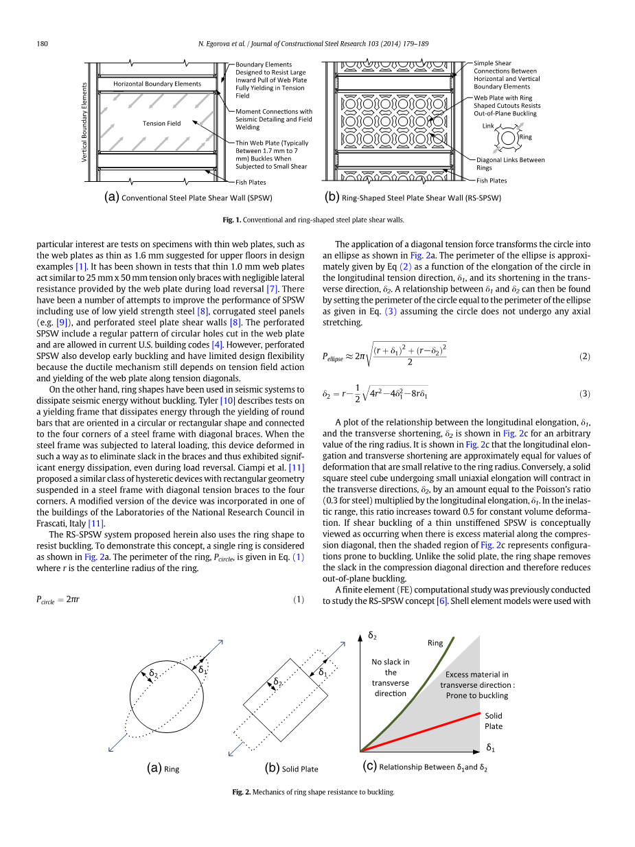 本文提出的RS-SPSW系统也使用了环的形状来抵抗屈曲。为了证明这一概念,我们考虑了一个单环如图2a所示。环的周长Pcerce以等式给出(1),其中r是环的中心线半径。